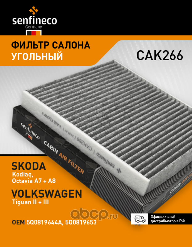 | SENFINECO | CAK266 | Фильтр салона угольный | ||