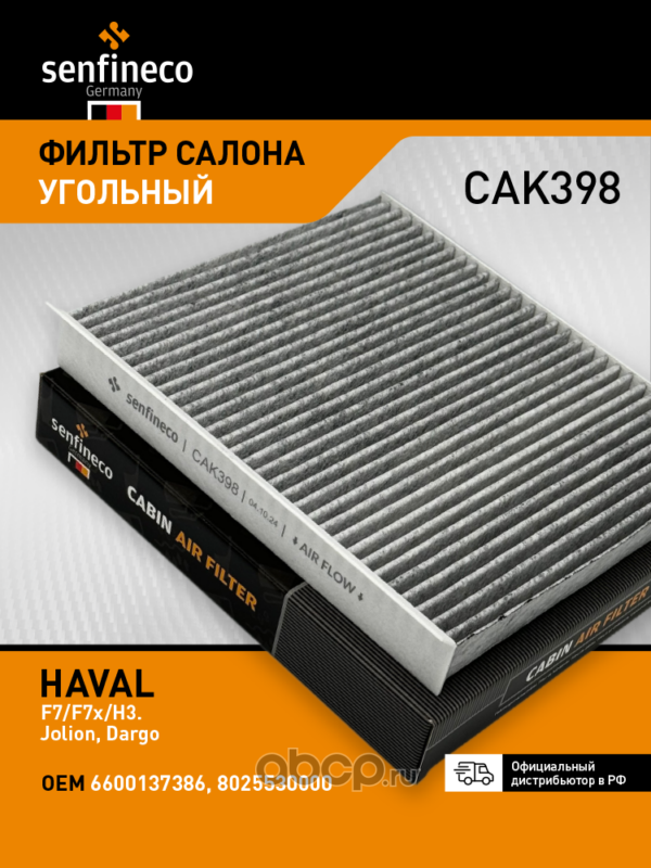 | SENFINECO | CAK398 | Фильтр салона угольный |