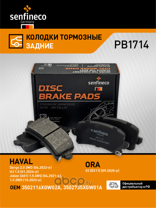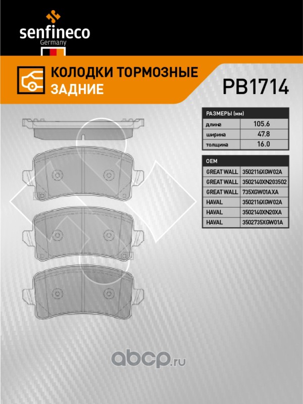| SENFINECO | PB1714 | Колодки тормозные задние | ||