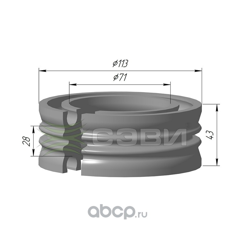 Чехол амортизатора с буфером хода сжатия универсальный (буфер h66d18) для передней подвески а/м LADA: LARGUS, XRAY, RENAULT: LOGAN, SANDERO, DUSTER, полная применяемость на сайте www.sevi.ru