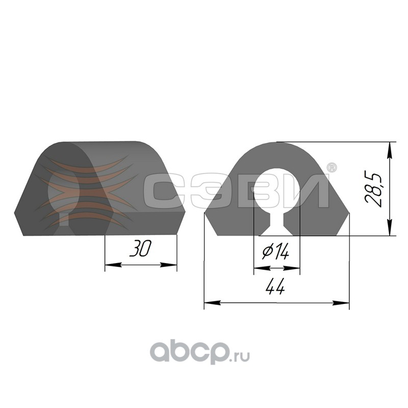 Комплект подушек заднего стабилизатора (в упаковке 2 шт.) для а/м LADA: KALINA, PRIORA «СЭВИ-ЭКСПЕРТ»