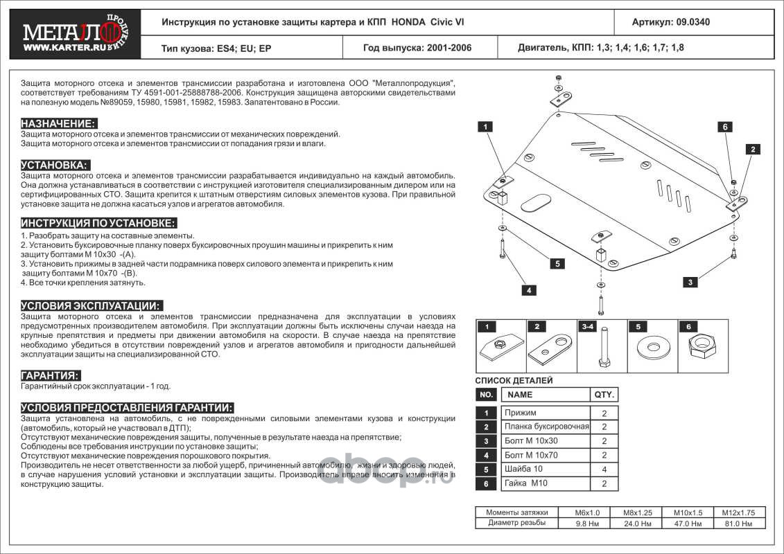 Защита картера и КПП для HONDA Civic, 2001-2006, ES4; EU; EP, сталь 2,0 мм