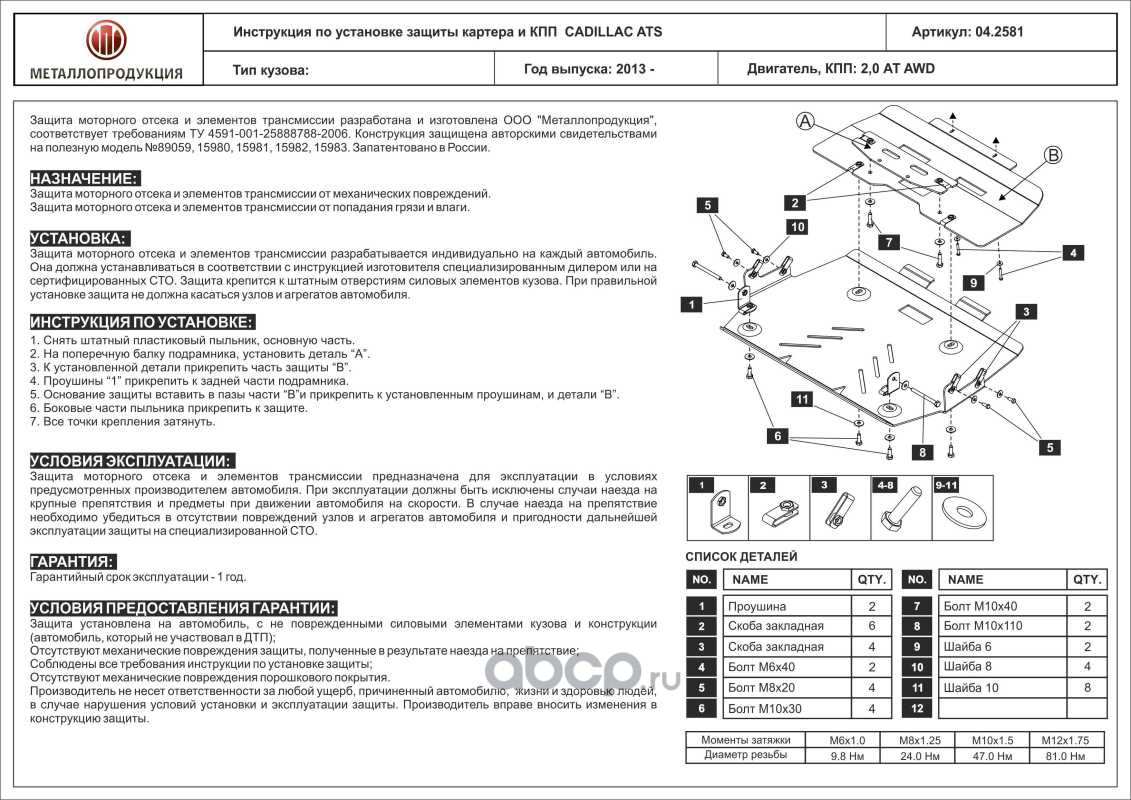 Защита картера и КПП, Кузов: DA, сталь 2 мм, вес: 13,3, время установки: 15-30 мин.