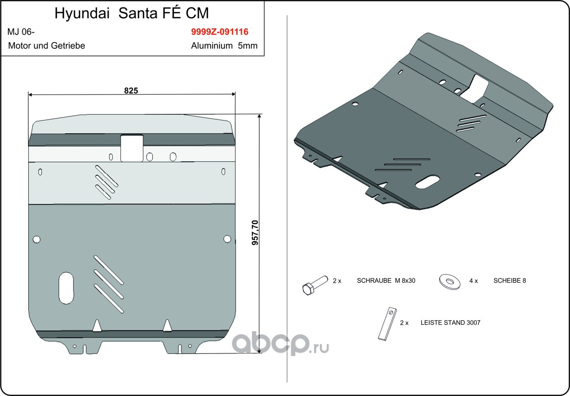 Защита картера и КПП для HYUNDAI Santa Fe, 2006-2010, AL 5 мм