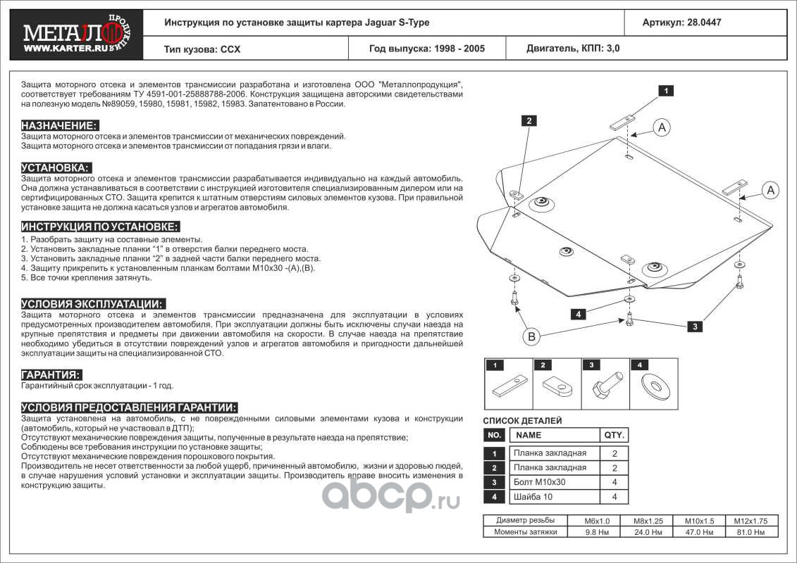 Защита картера для JAGUAR Jaguar S-Type, 1998-2005, CCX, сталь 2,0 мм