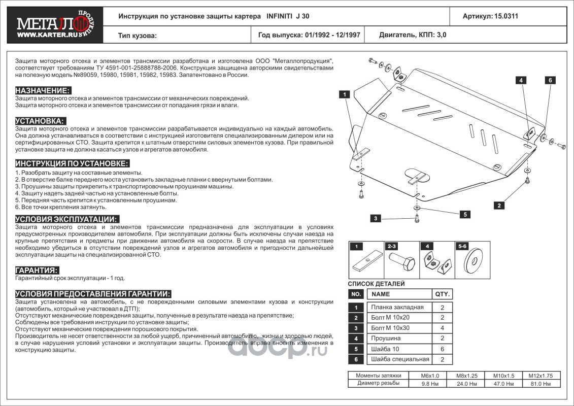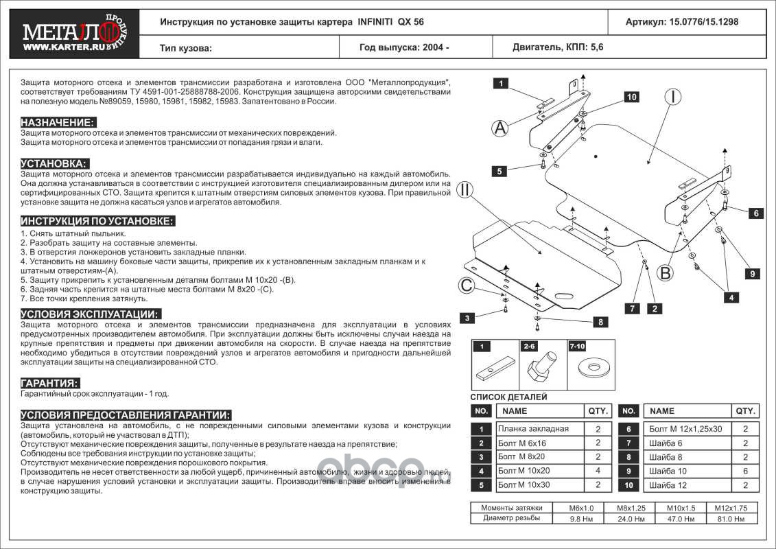 Защита картера для INFINITI QX 56, 2004-2010, JA60, сталь 2,5 мм