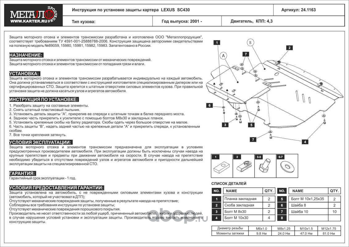 Защита картера для LEXUS SC430, 2001-2010, AL 5 мм