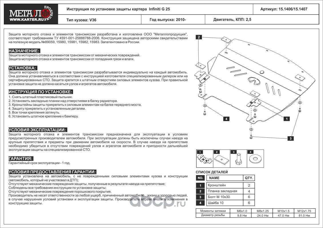 Защита картера для INFINITI Q50/Q60, 2 010-2 014, V36, AL 5 мм