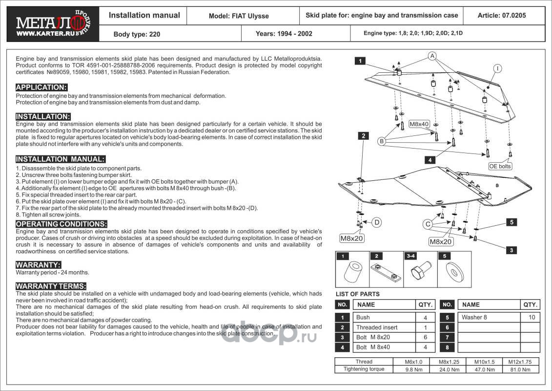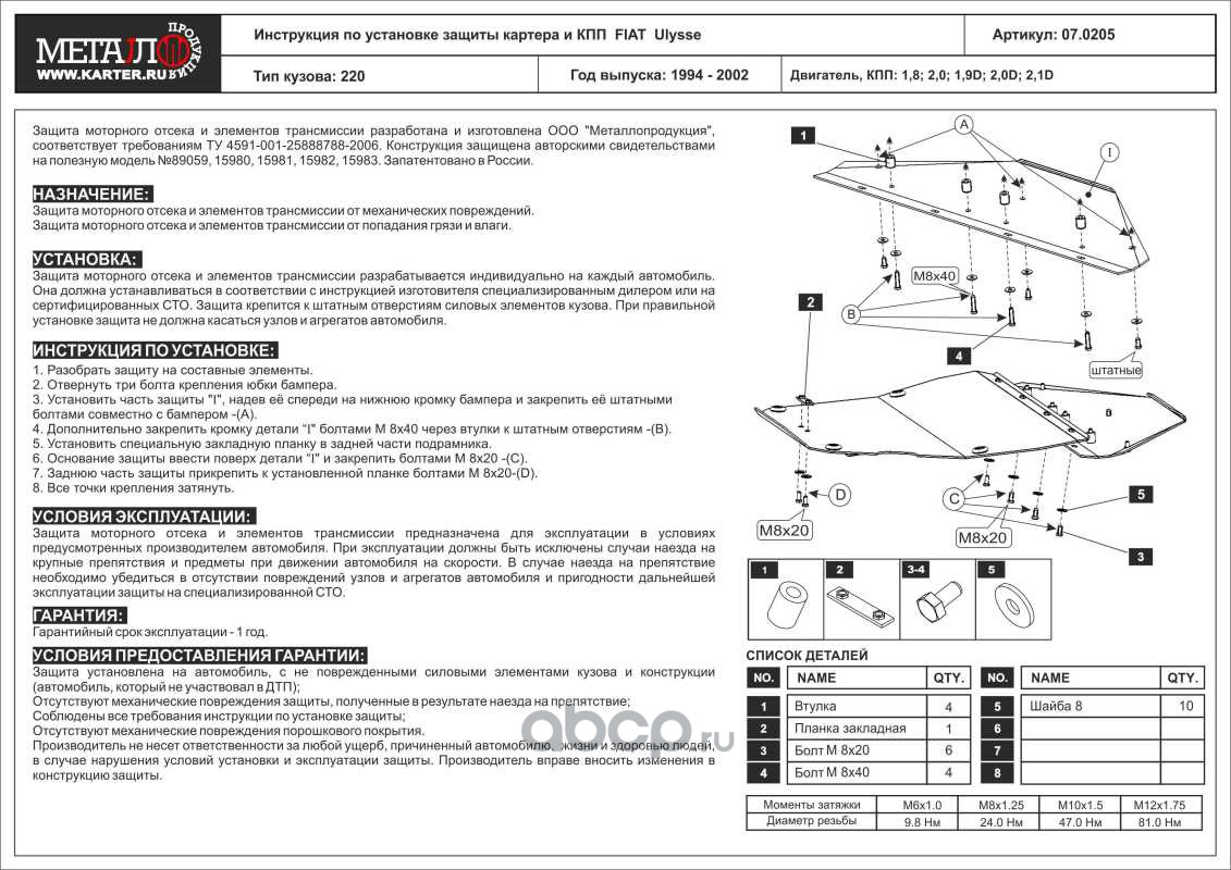 Защита картера и КПП для FIAT Ulysse, 1994-2002, 220, сталь 2,0 мм