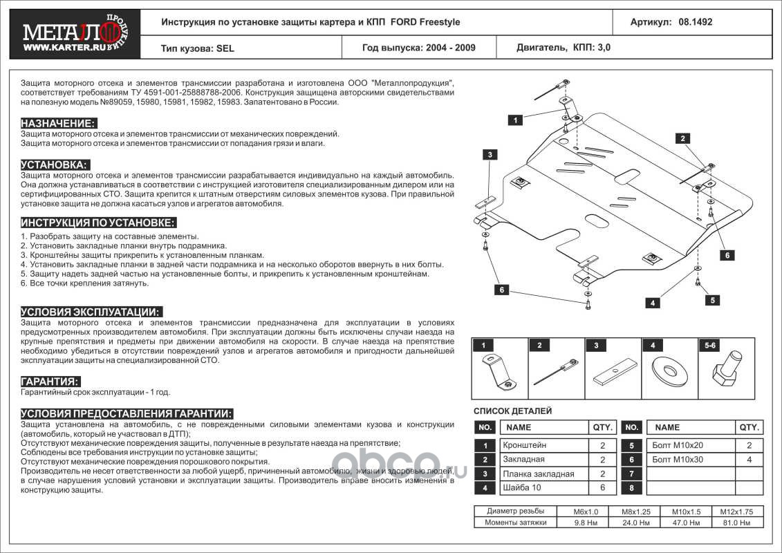 Защита картера и КПП для FORD Freestyle, 2004-2009, SEL, сталь 2,5 мм