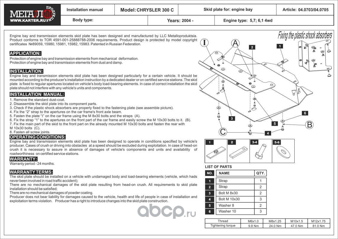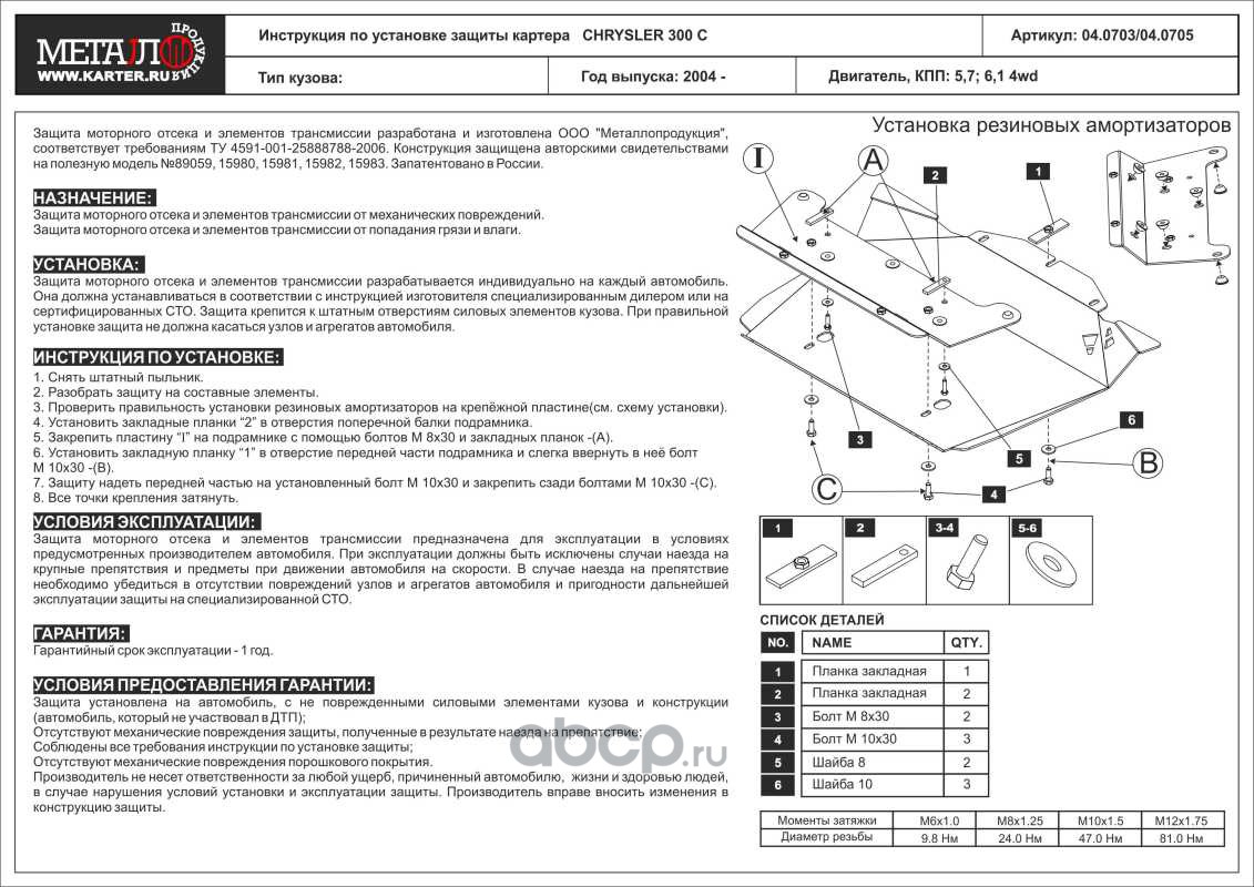 Защита картера для CHRYSLER 300 C, 2004-2010, AL 5 мм