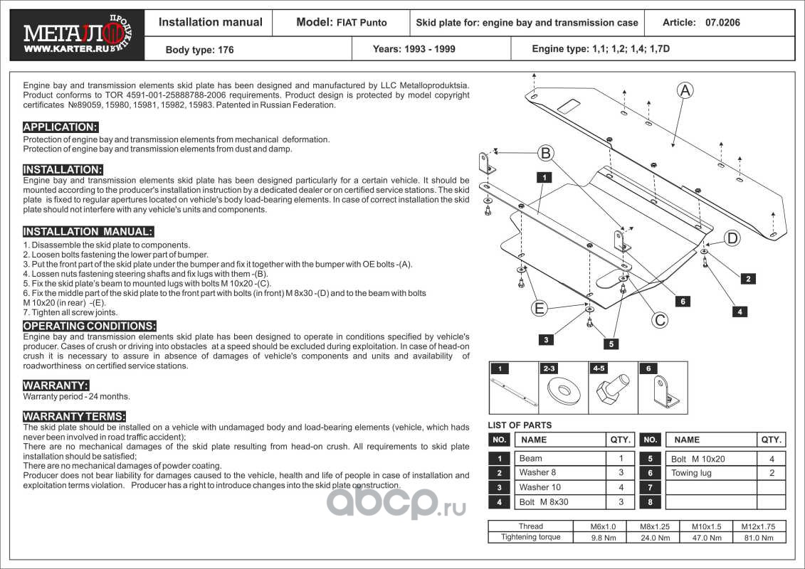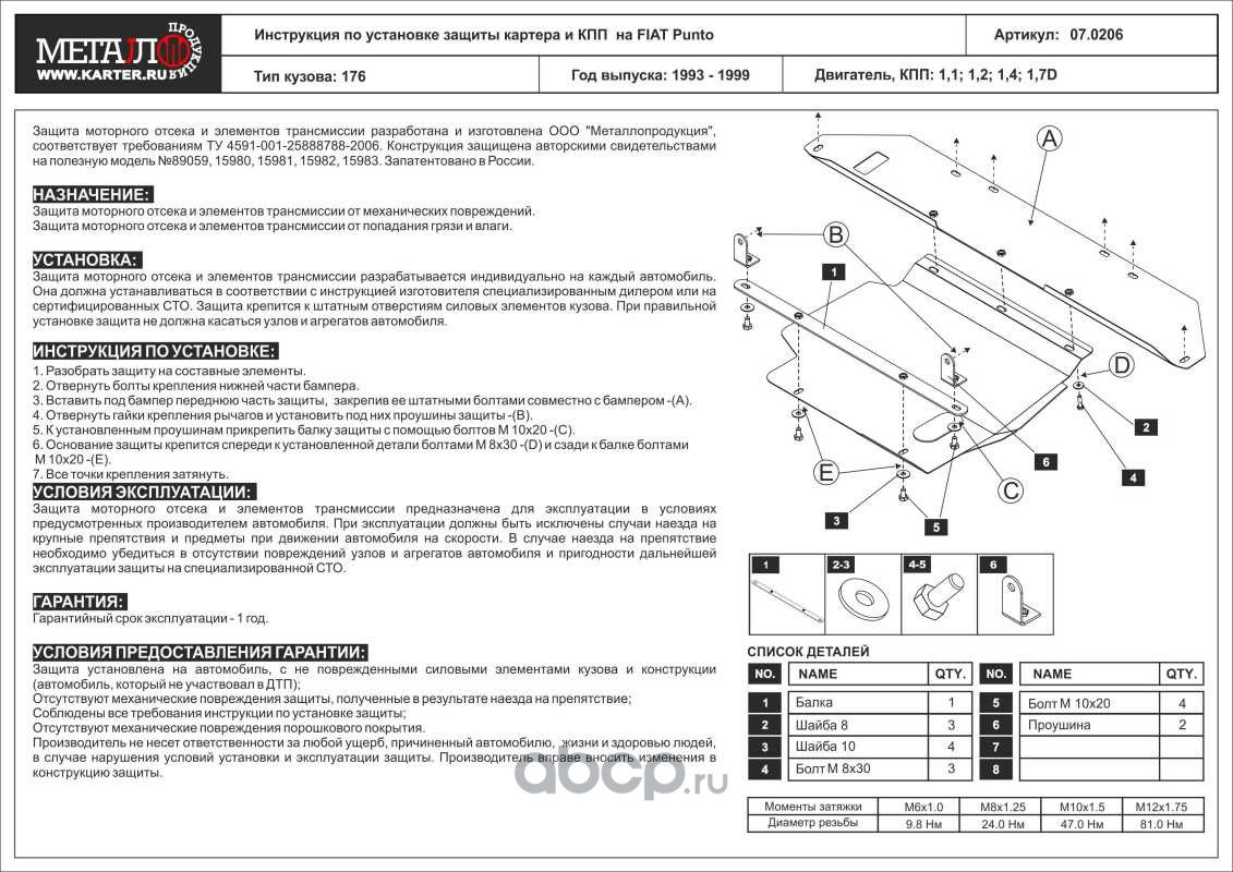 Защита картера и КПП для FIAT Punto, 1993-1999, 176, сталь 2,0 мм