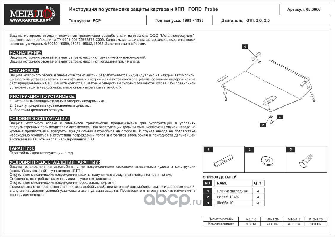 Защита картера и КПП для FORD Probe, 1993-1998, ECP, сталь 2,0 мм
