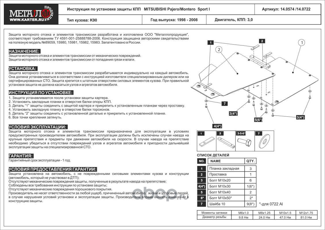Защита КПП для MITSUBISHI Pajero Sport I, 1998-2008, K90, AL 5 мм