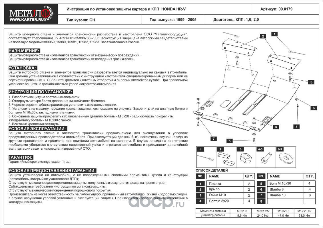Защита картера и КПП для HONDA HR-V, 1999-2005, GH, сталь 2,0 мм
