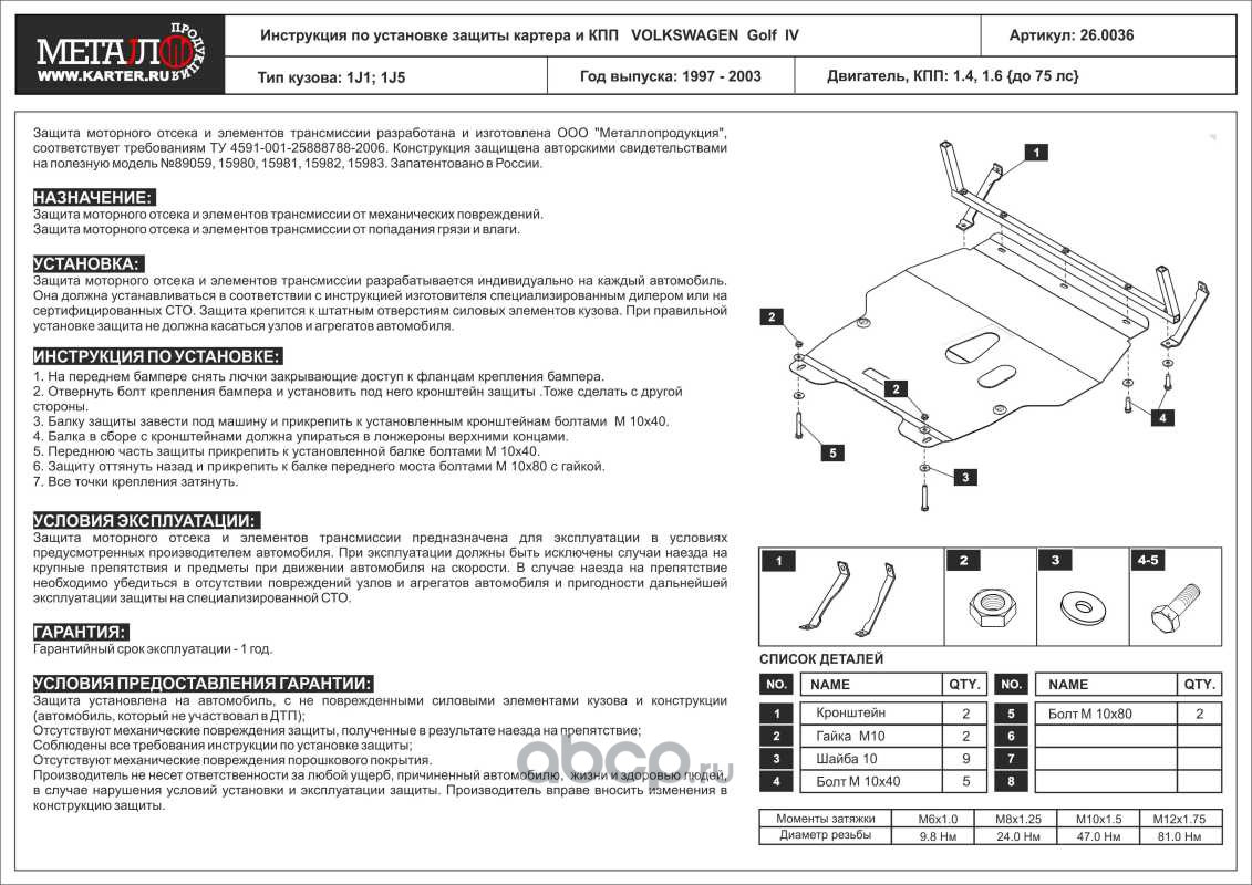 Защита картера и КПП, сталь 2 мм, вес: 11,7