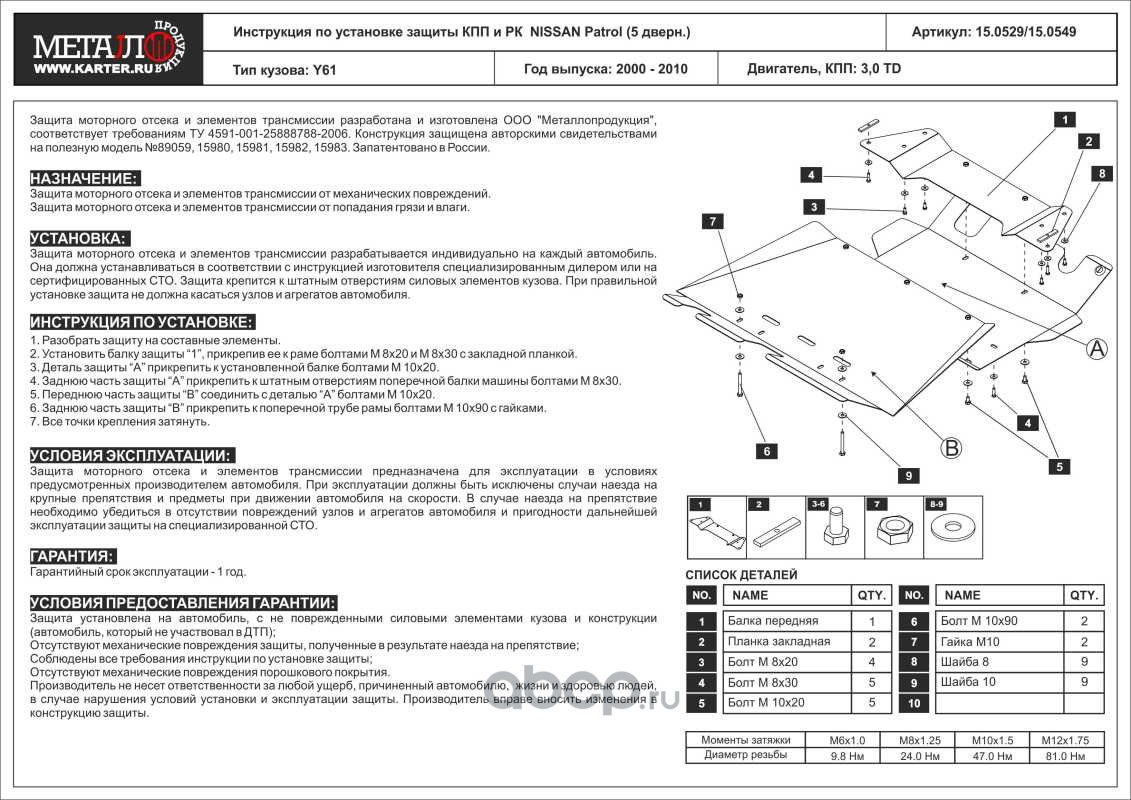 Защита КПП и РК для NISSAN Safari, 1997-2007, Y61, сталь 2,5 мм