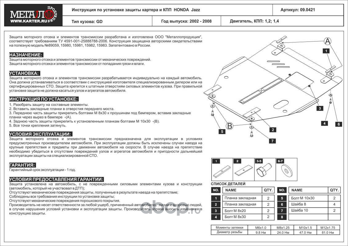 Защита картера и КПП для HONDA Jazz, 2001-2007, GD, сталь 2,0 мм