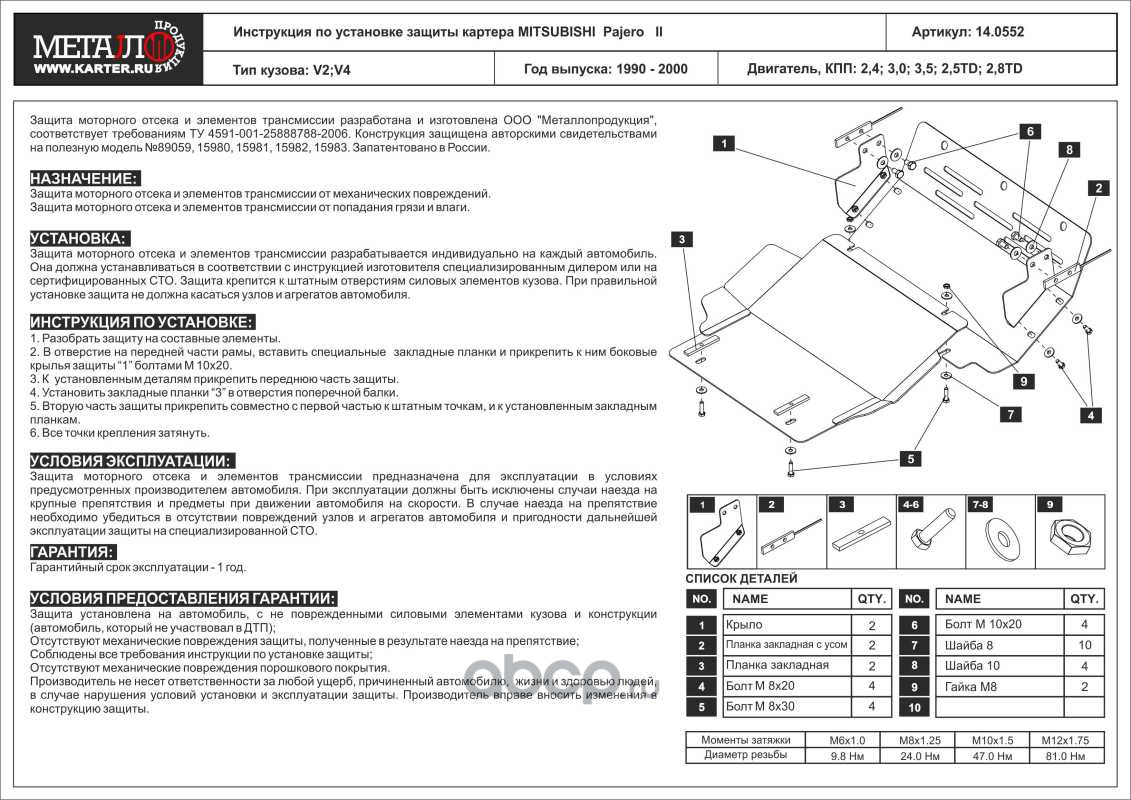 Защита картера и радиатора для MITSUBISHI Pajero II, 1990-1999, II, сталь 2,5 мм