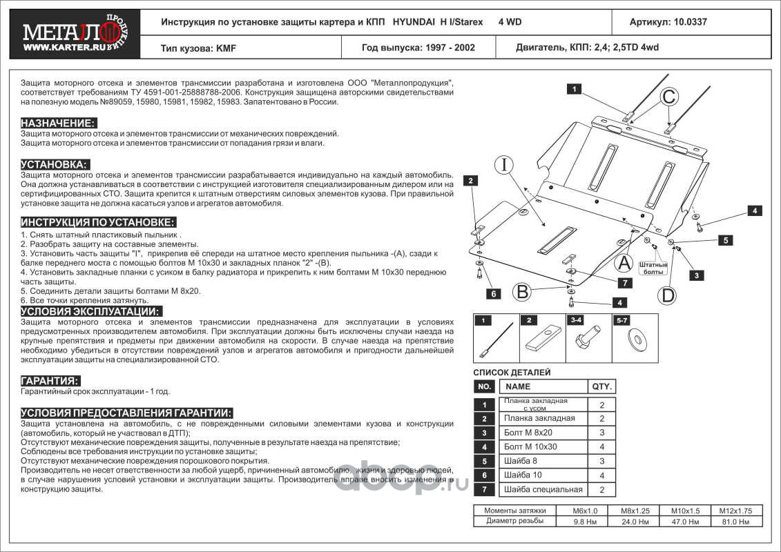 Защита картера и КПП для HYUNDAI H I, 1997-2002, KMF, сталь 2,0 мм