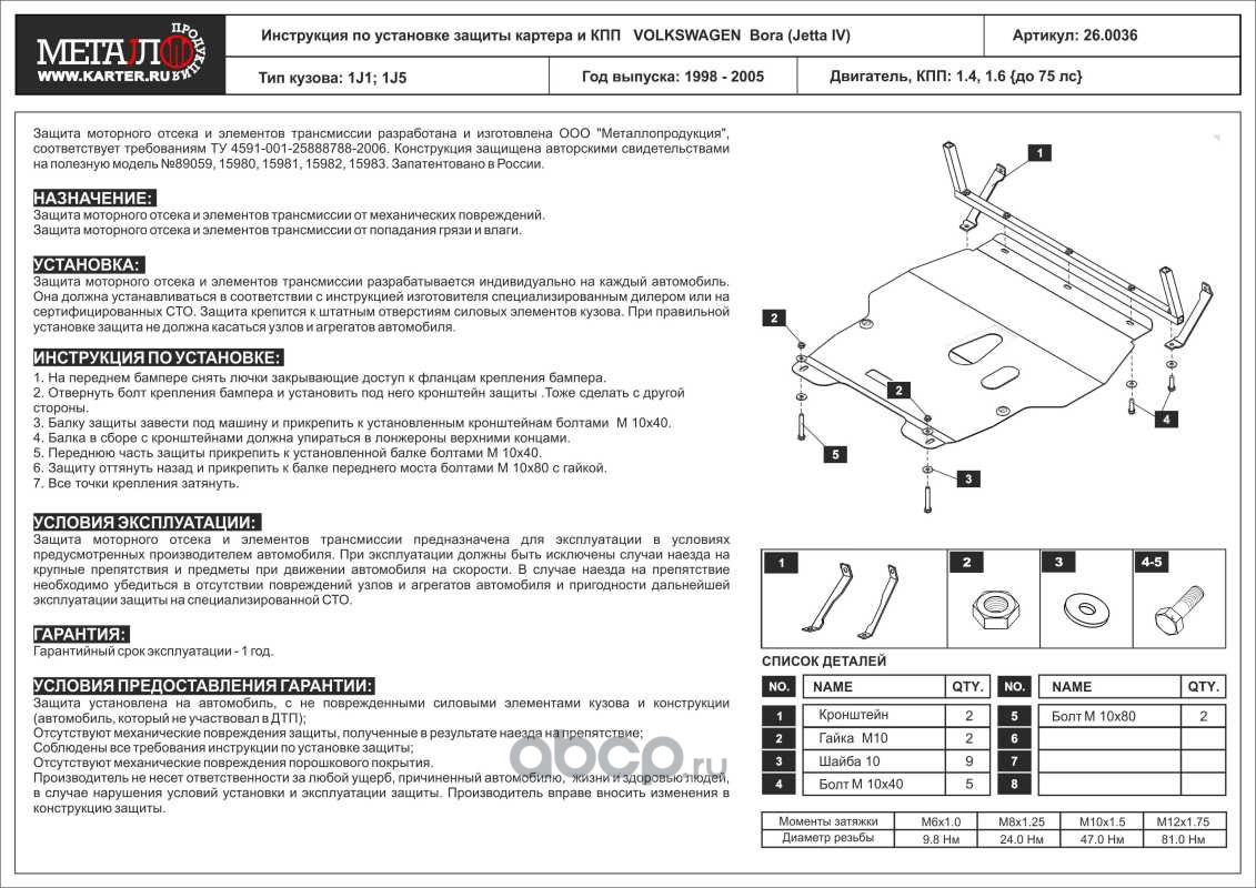 Защита картера и КПП для VOLKSWAGEN Jetta, 1998-2005, сталь 2,0 мм
