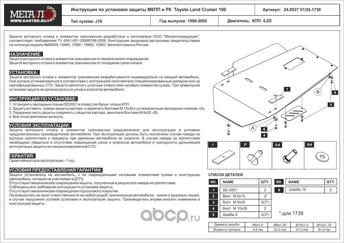 Защита МКПП и РК для TOYOTA Land Cruiser 100, 1998-2002, J10, сталь 2,5 мм