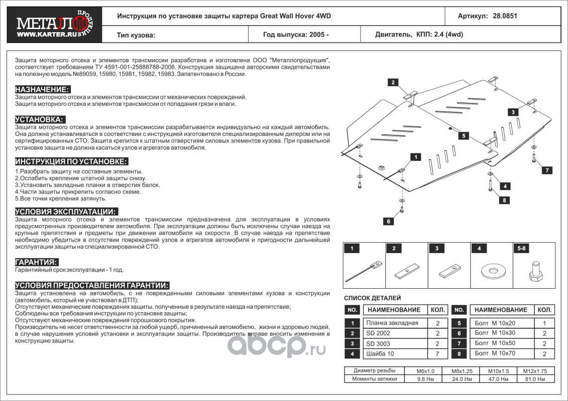 Защита картера и КПП для GREAT WALL Hover, 2005-2010, сталь 2,0 мм