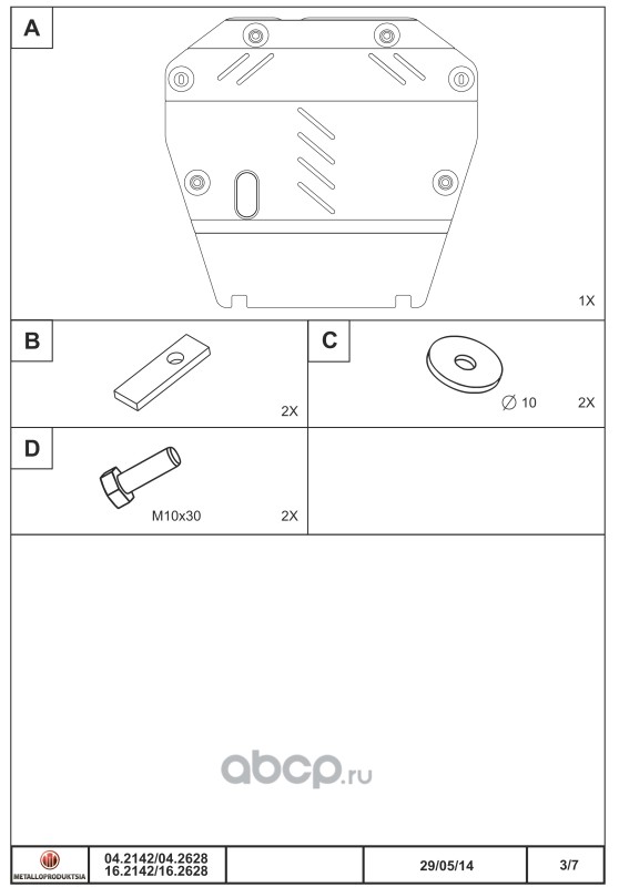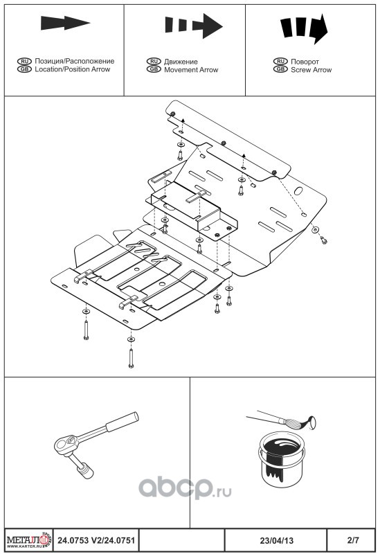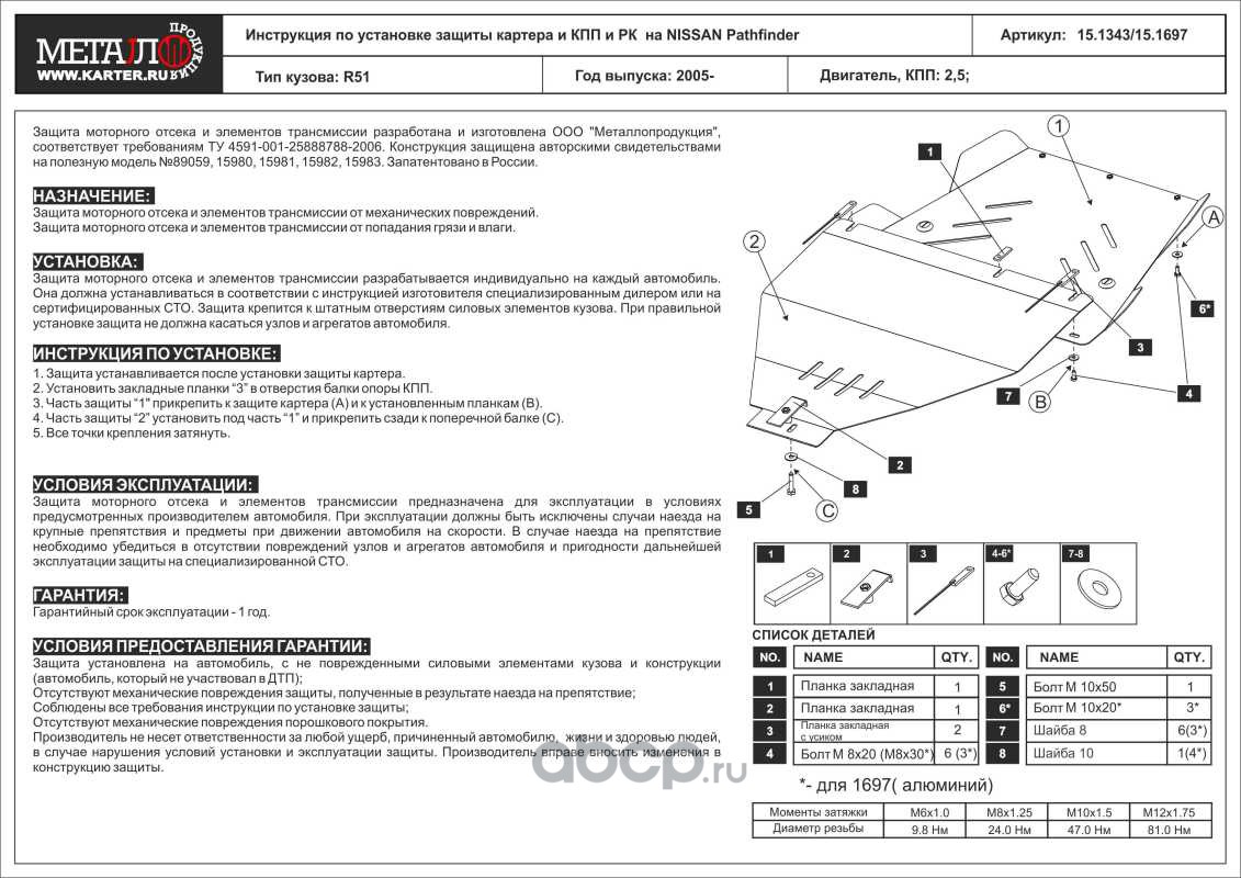 Защита картера и КПП, Кузов: 6, сталь 1,8 мм, вес: 10,7, время установки: 30 мин.