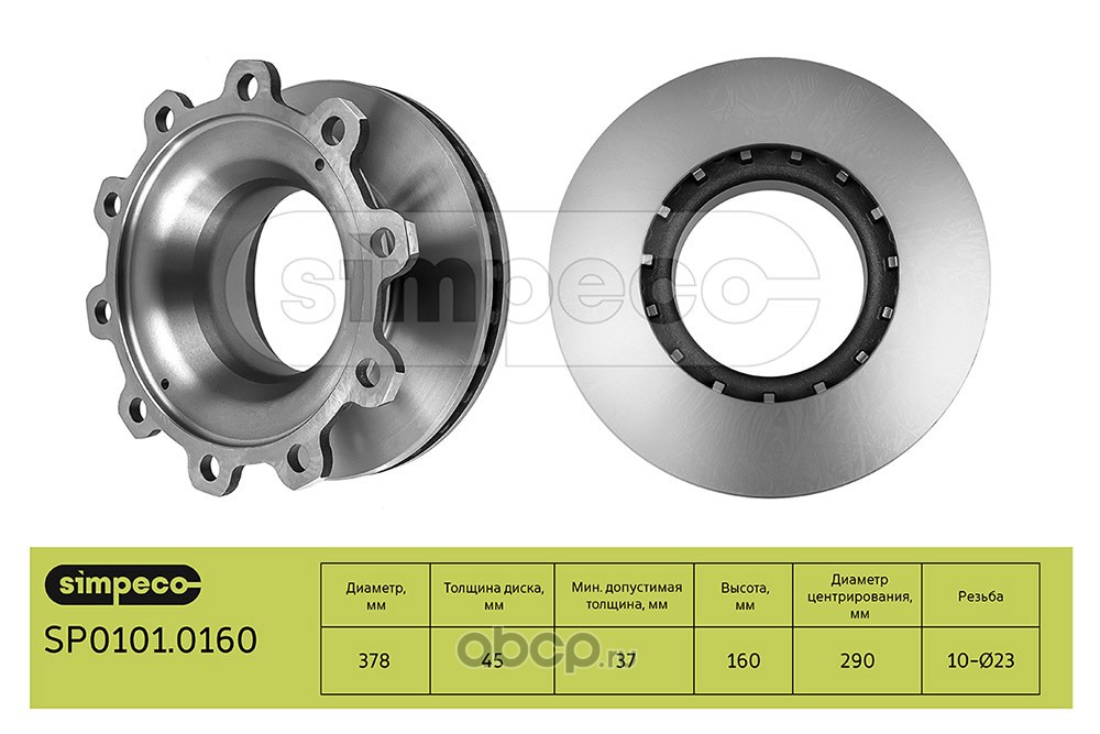 | SIMPECO | SP01010160 | Диск тормозной BPW о.н.0308834067 (SP0101.0160) | ||