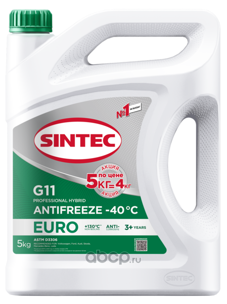 | SINTEC | 990580 | Антифриз Antifreeze Euro G11 green -40 (Акция 5кг по цене 4кг) 5л. | ||