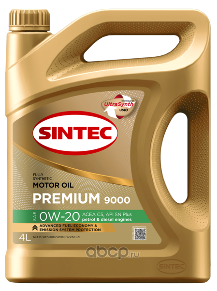 | SINTEC | 600135 | Масло моторное синтетическое Premium 9000 SAE 0W-20 ACEA C5 API SN plus 4л | ||