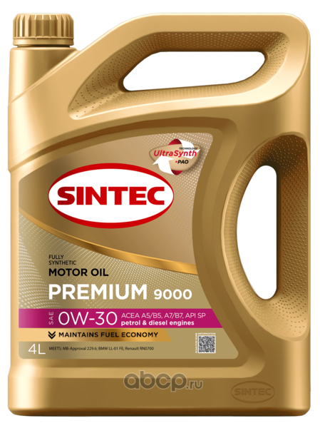 | SINTEC | 600115 | Масло моторное синтетическое Premium 9000 SAE 0W-30 ACEA A5/B5 API SP 4л | ||