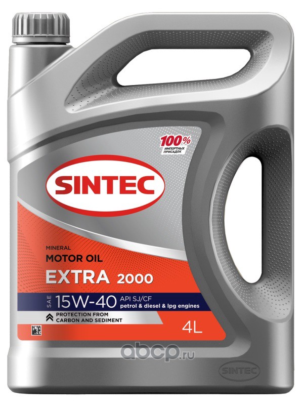| SINTEC | 600270 | Масло моторное минеральное Extra 2000 SAE 15W-40 API SJ/CF 4л | ||