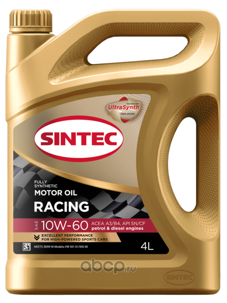 | SINTEC | 999843 | Масло моторное синтетическое Racing SAE 10W-60 ACEA A3/B4 API SN/CF 4л | ||