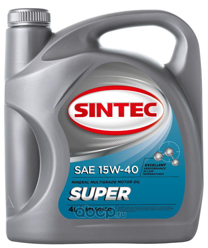 | SINTEC | 900314 | Масло моторное минеральное Super SAE 15W-40 API SG/CD 4л | ||