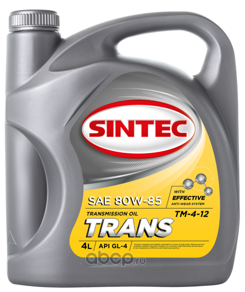 | SINTEC | 900272 | Масло трансмиссионное минеральное Sintec Trans SAE 80W-85 API GL-4 4л | ||