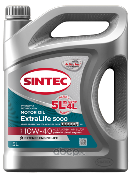 | SINTEC | 101956 | Масло моторное полусинтетическое ExtraLife 5000 SAE 10W-40 ACEA A3/B4 API SL/CF 5л Акция 5л по цене 4л | ||