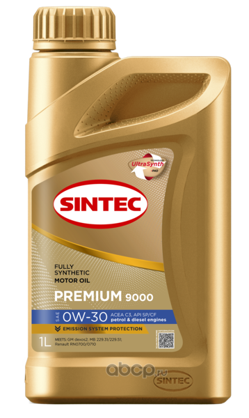 | SINTEC | 600110 | Масло моторное синтетическое Premium 9000 SAE 0W-30 ACEA C3 API SP/CF 1л | ||