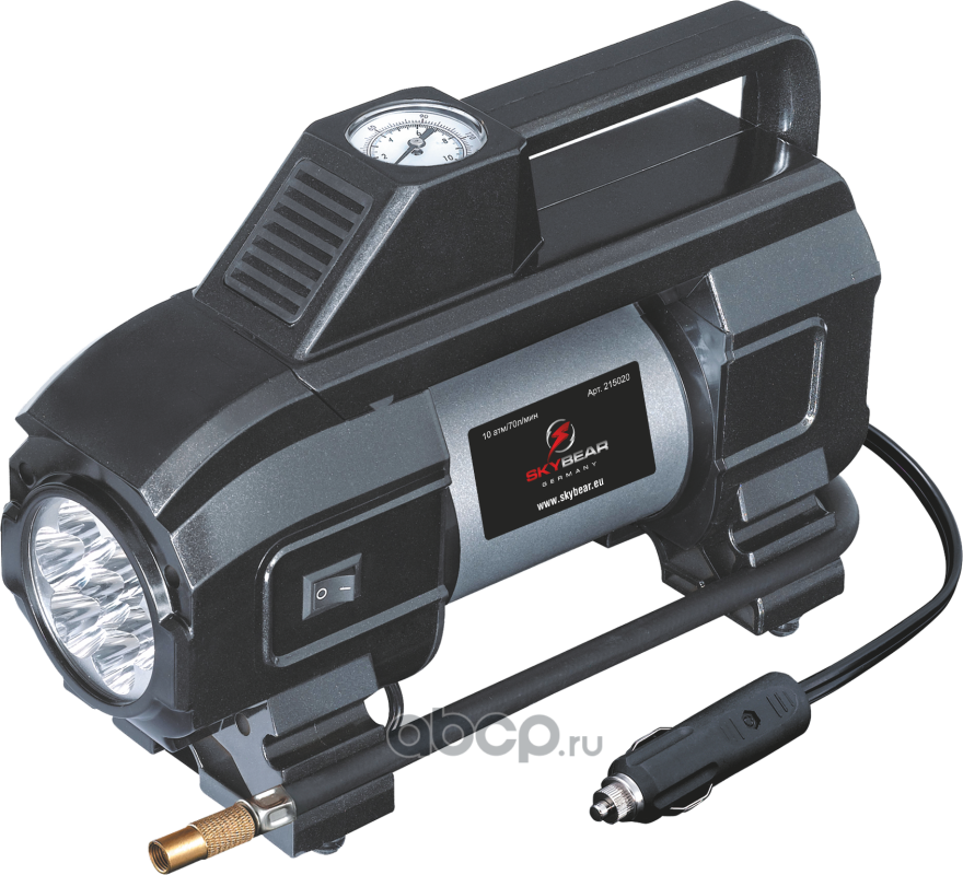 SKYBEAR 215020 Компрессор двухпоршневой с светодиодным фонарем 12 В 10 атм. 70 л/мин.