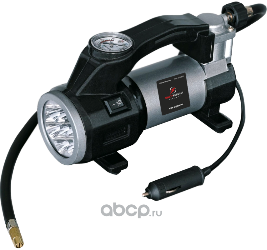 SKYBEAR 211020 Компрессор однопоршневой с светодиодным фонарем 12 В 10 атм. 30 л/мин.