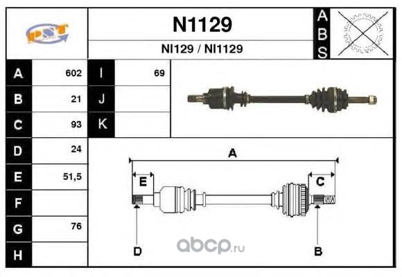 | SNRA | N1129 | Приводной вал | ||