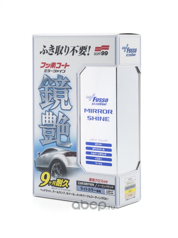 | SOFT99 | 00351 | Покрытие для кузова для усиления блеска Soft99 Fusso Mirror Shine 9 Months для светлых, 250 мл | ||