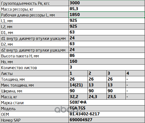 SPRINGER 690004927 Рессора передняя для MAN TGA, TGS, TGX 3 листа