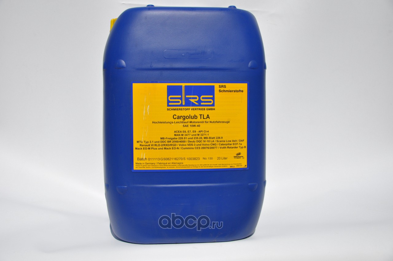 | SRS | 7228 | Масло моторное полусинтетика SRS Cargolub TLA 10W-40 20 л. | ||