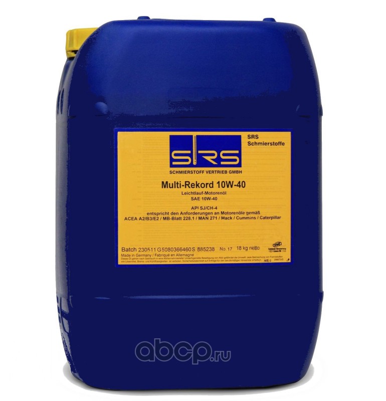 | SRS | 7478 | Масло моторное полусинтетика SRS Multi-Rekord 10W-40 20 л. | ||