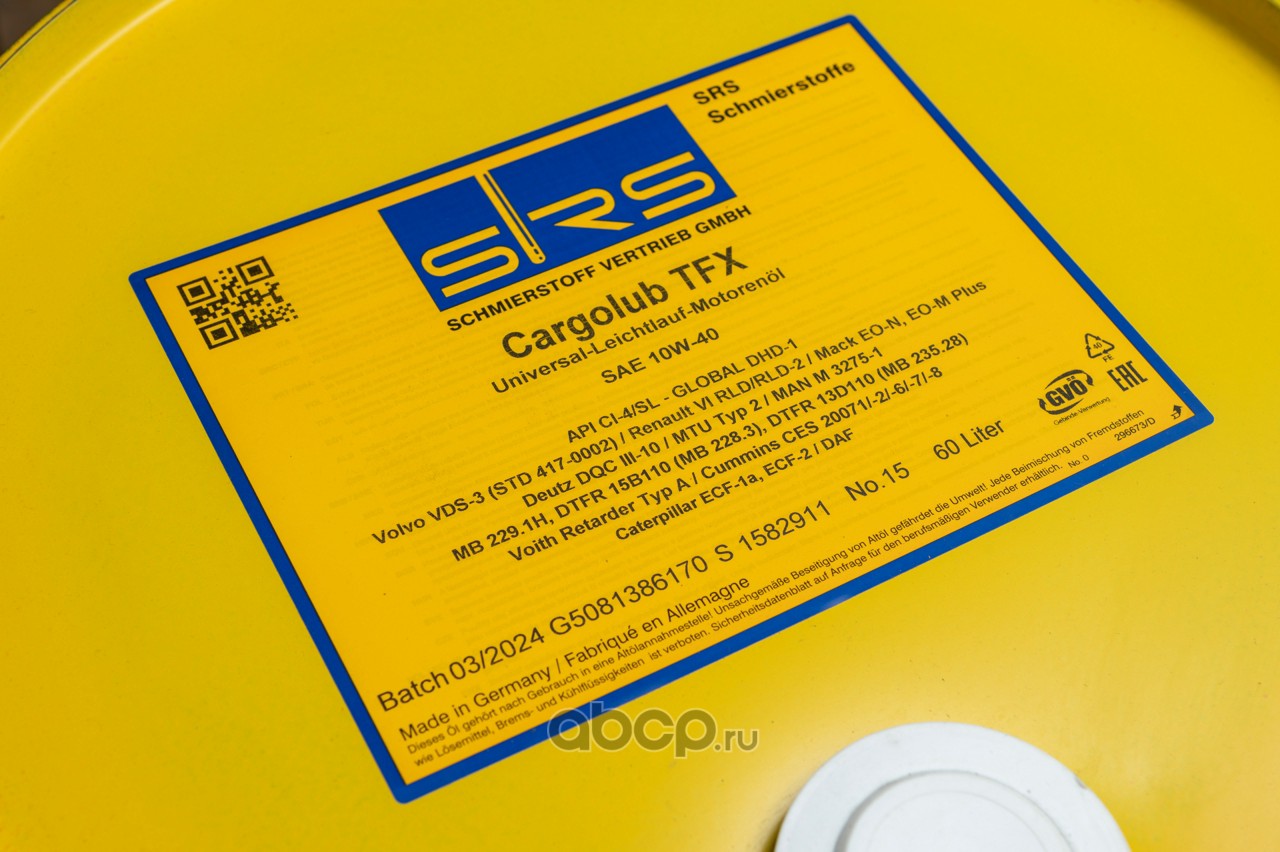 | SRS | 7234 | Масло моторное полусинтетика SRS Cargolub TFX 10W-40 60 л. | ||
