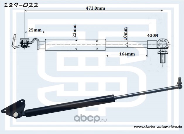 | STARKE | 189022 | Амортизатор багажника TOYOTA COROLLA (E11) Hatchback --01.2002 R L=473mm / 430N | ||