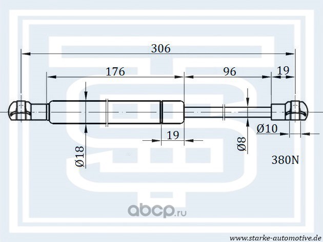 | STARKE | 183202 | Амортизатор капота AUDI Q5 11.2008-- L=306mm / 380N | ||