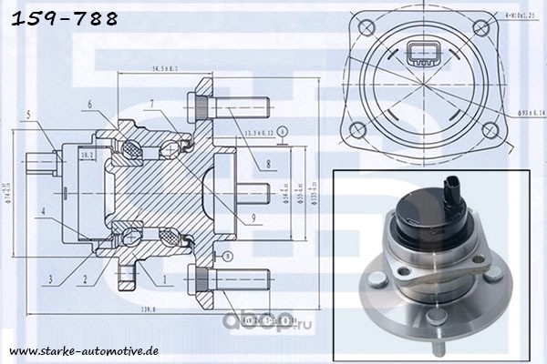 | STARKE | 159788 | Ступица задняя TOYOTA COROLLA (E12) --12.2007 с ABS | ||