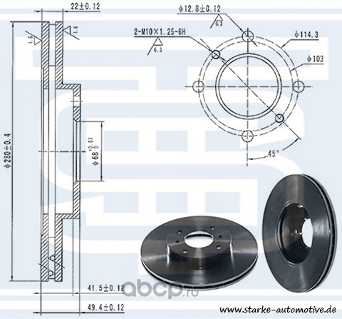 | STARKE | 179955 | Диск тормозной перед. NISSAN ALMERA II (N16) / PRIMERA (P11) 280x22 | ||